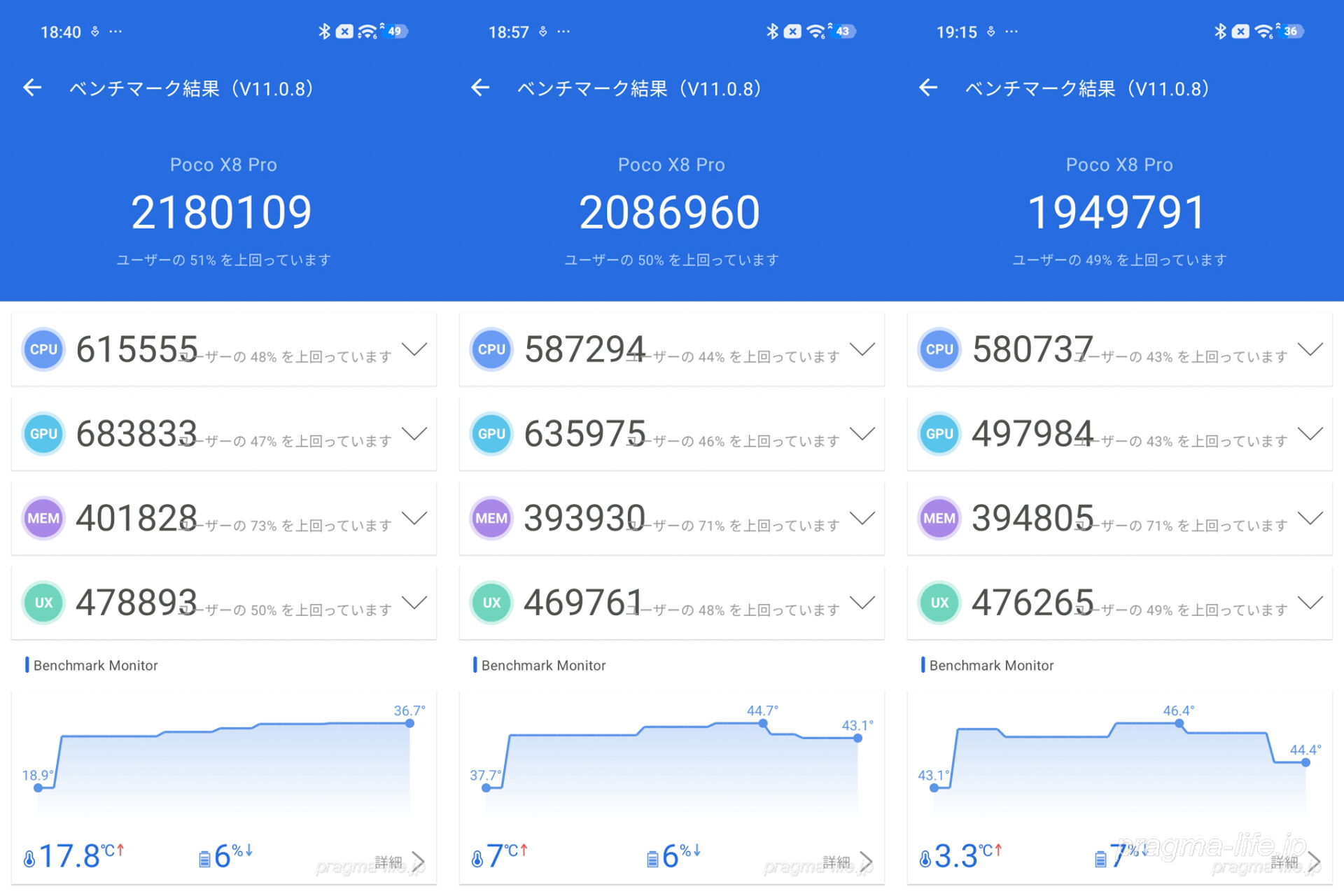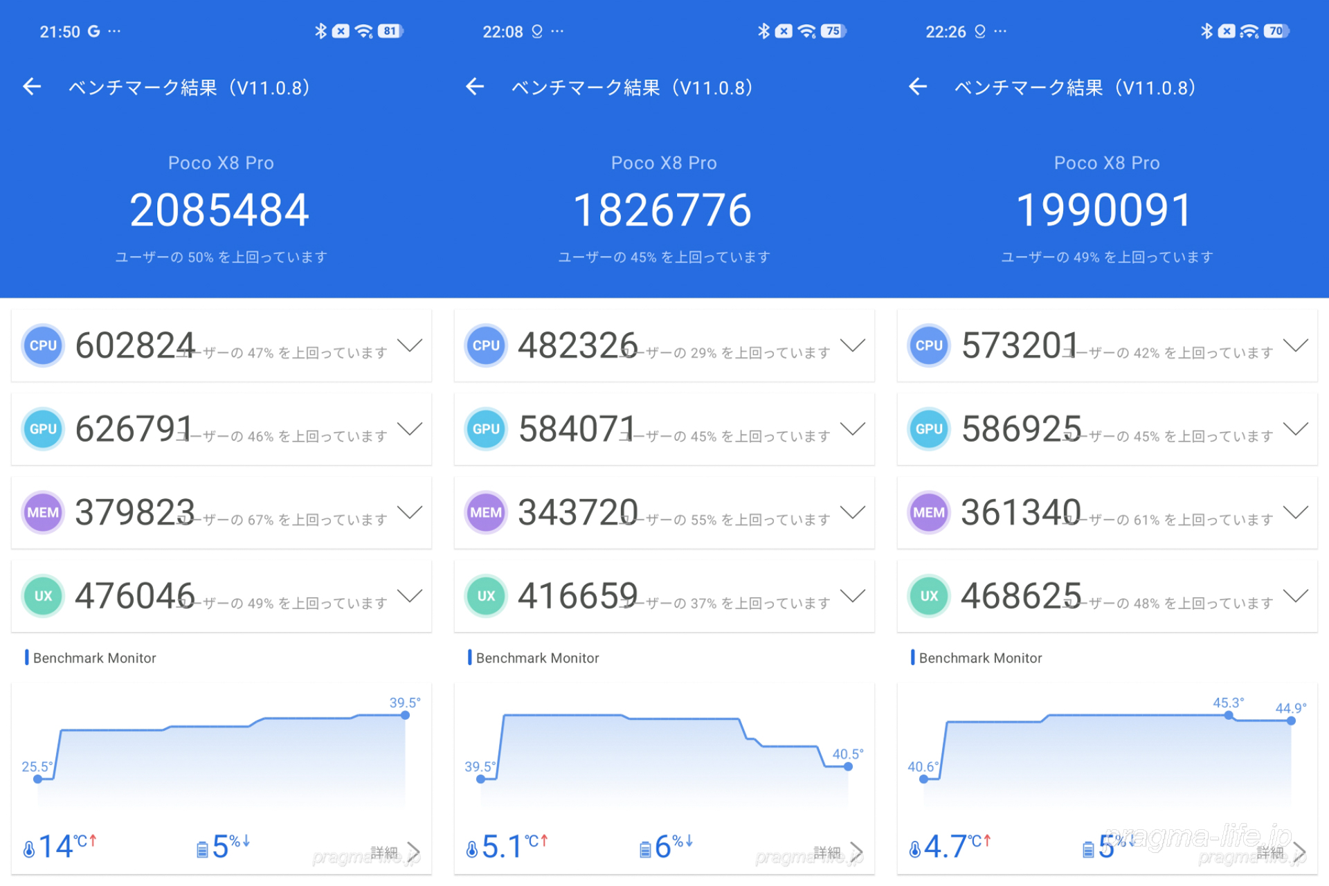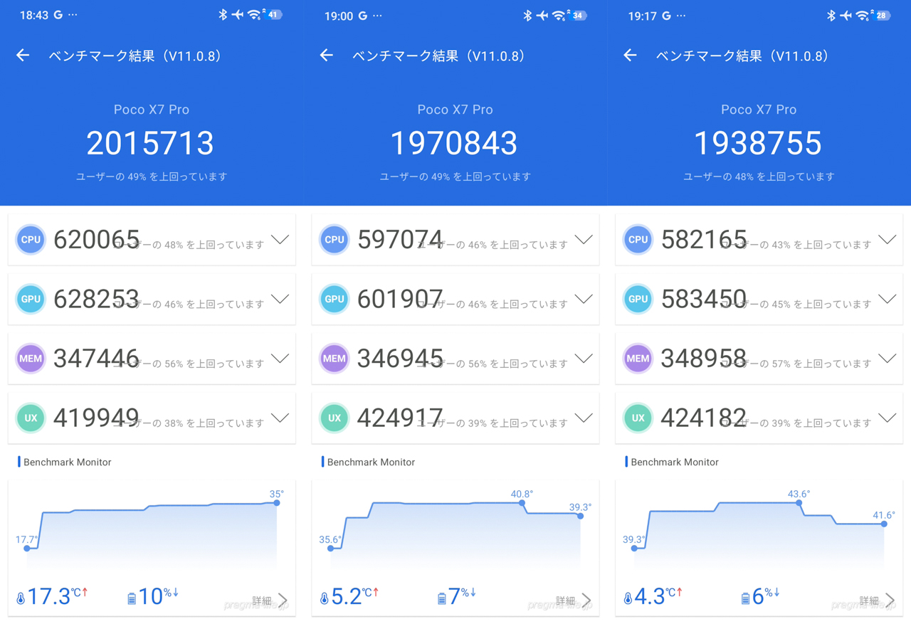 以上、POCO X8 ProのAnTuTuベンチマークのチェックでした。