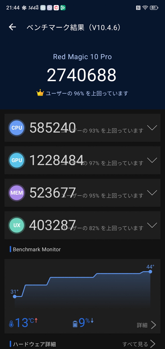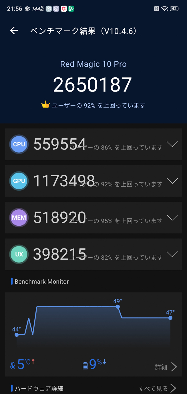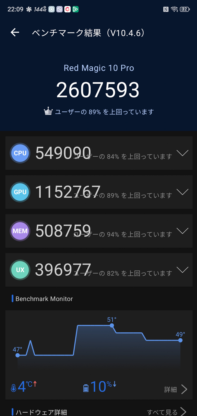以上、REDMAGIC 10S ProのAnTuTuベンチマークチェックでした。