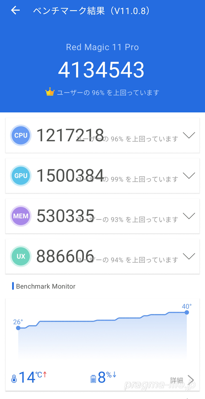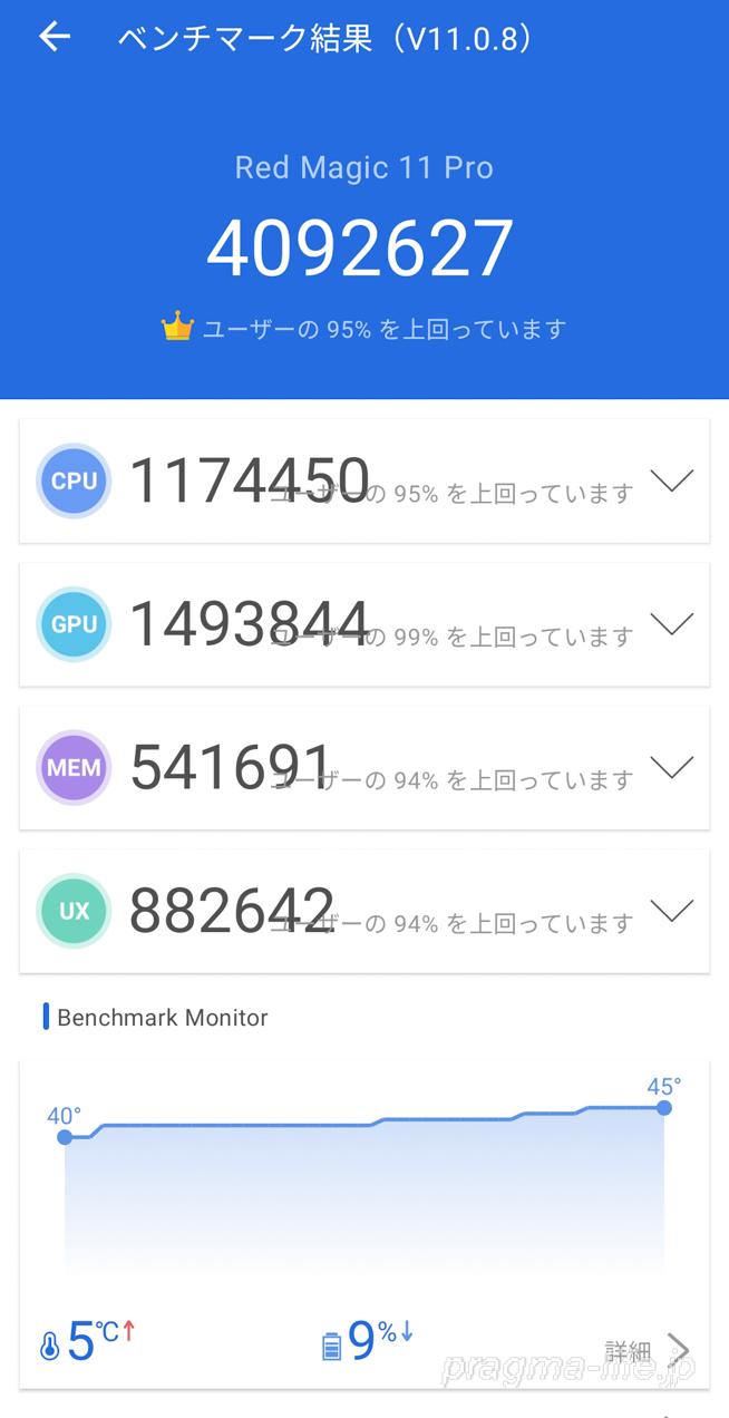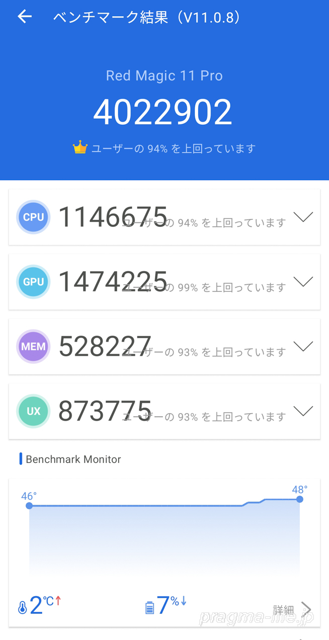 以上、REDMAGIC 11 ProのAnTuTuベンチマークチェックでした。