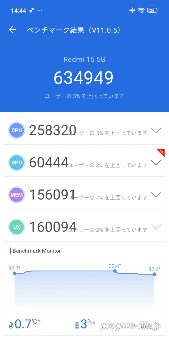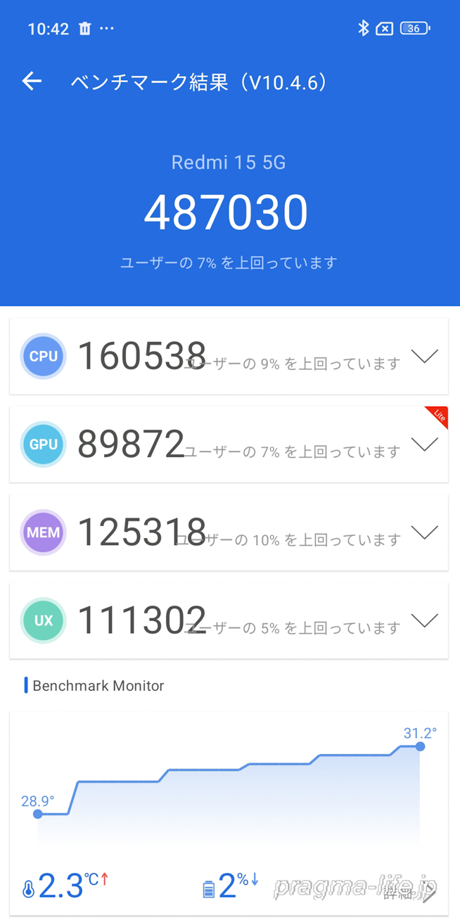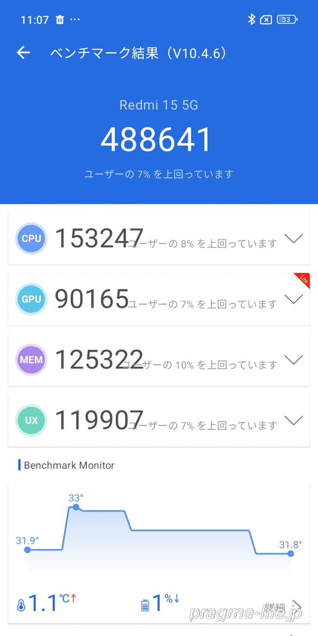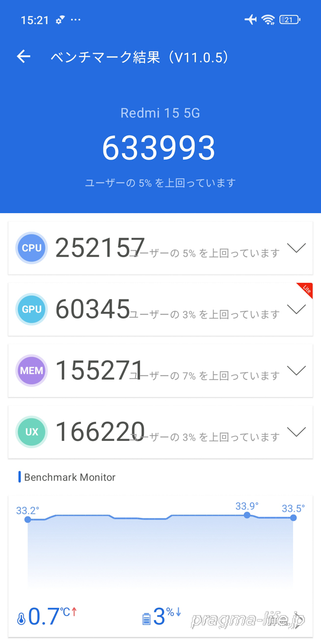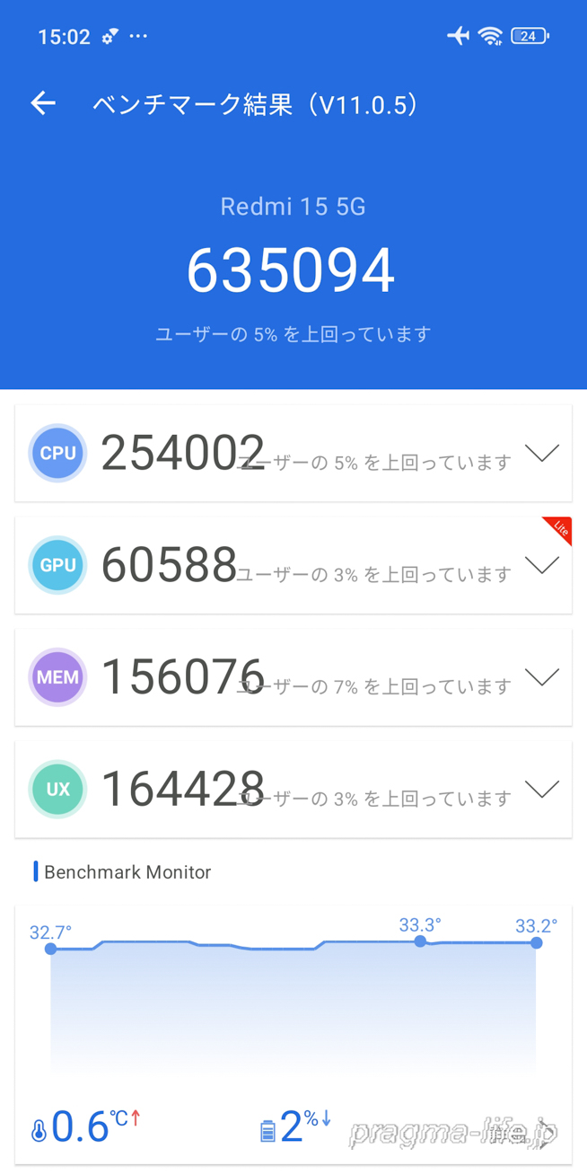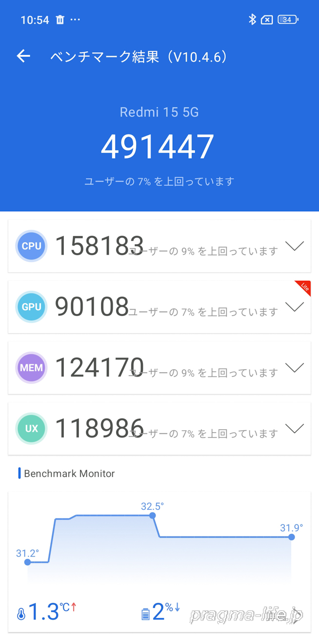 以上、REDMI 15 5GのAnTuTuベンチマークのチェックでした。
