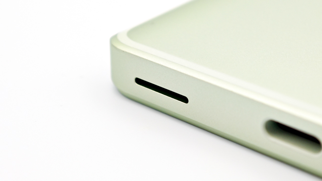 天面にSIMスロットは少し珍しい配置。また、イヤホンジャックを底面に備えています。