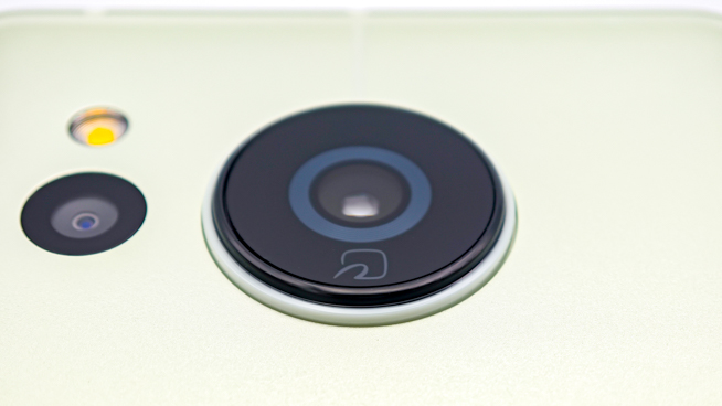 そして、特徴的なのが上部中央に配置された円形のメインカメラ。1/1.55インチとミドルレンジモデルとしては大きなサイズのセンサーを採用しています。