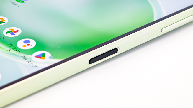 AQUOS sense8のスピーカーは底面に一つだけのモノラルです。
