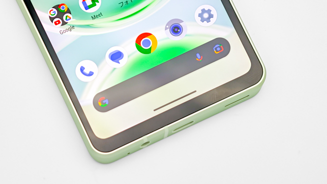 筆者が購入したAQUOS sense8のカラーは「ペールグリーン」。濃すぎない色合いで、他の「ライトカッパー」「コバルトブラック」等も落ち着いた雰囲気となっています。