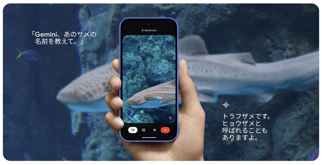 最新のAndroid端末はGoogleのAI「Gemini」をアシスタントとして搭載するものが増えてきましたが、Gemini Liveは画面やカメラに映っているものをGeminiに共有。