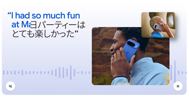 Google Pixel 10はGeminiなど最新AIを多数搭載したスマホで、必要な情報を必要なタイミングで先回りしてお知らせする「マジックサジェスト」、通話中にそれぞれが話すことを本人の声で翻訳できるようになるという「リアルタイム翻訳」といった機能が使用可能とのこと。