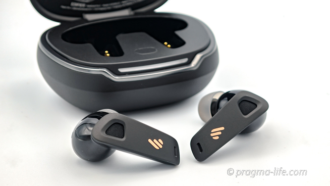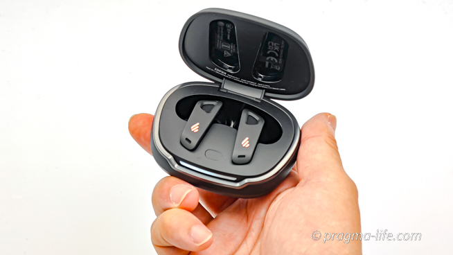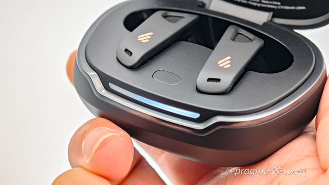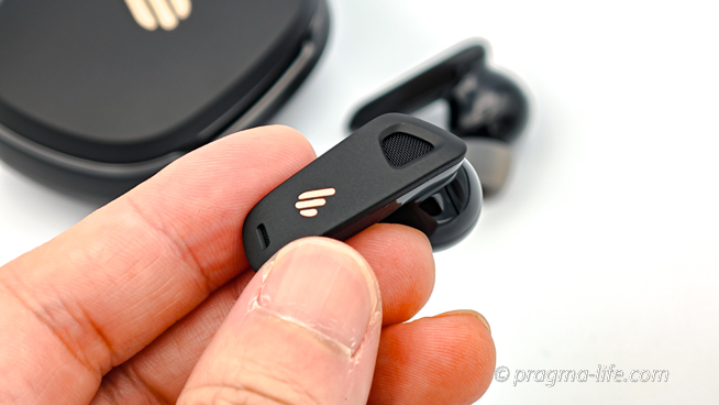 EDIFIER NeoBuds Pro 2はタッチセンサー部分が大きく、タッチ操作がかなり行いやすいと感じました。また、着脱検知機能もついているので、着脱で再生のON/OFFが自動で行われます。