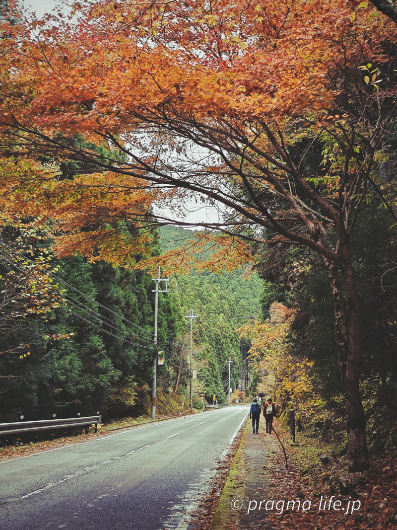 洞川温泉へ向かう道。標高が高く寒いため、紅葉が早い