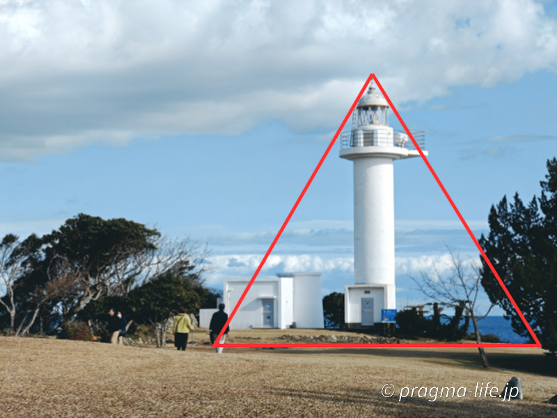 灯台を三角形の頂点にすることで視線が自然とそちらに向く