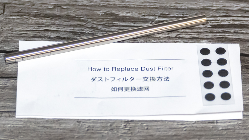 他社のワイヤレスイヤホンにはあまり見られませんが、チューニングの際に、フィルターの粘着部を押して固定する「アコースティック治具」や、ダストフィルター等が付属します。