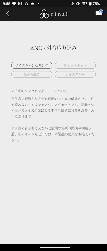 final ZE8000はアクティブノイズキャンセリングや外部音取り込みに対応しています。