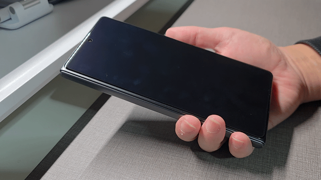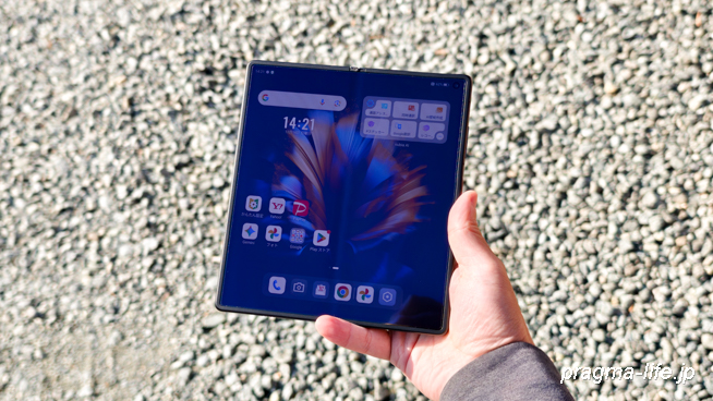 一般的なスマホと比べると重量級となっているので、今まで折りたたみスマホを使ったことがない方はかなりズッシリ感じるかと思います。