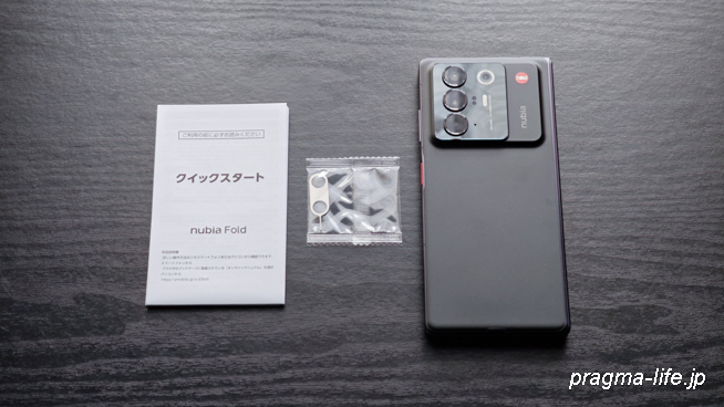 内容物は以下の通り。画面フィルムはメイン・サブどちらも貼付済みです。