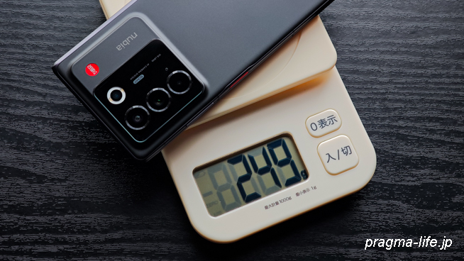 nubia Foldの本体は実測で約249gでした。公称重量ピッタリの重量です。