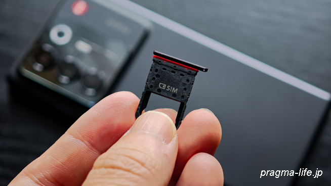 SIMスロットはnanoSIMが1枚入るのみ。ただし、eSIMには対応しているので、組み合わせてデュアルSIMとして使うことも可能です。