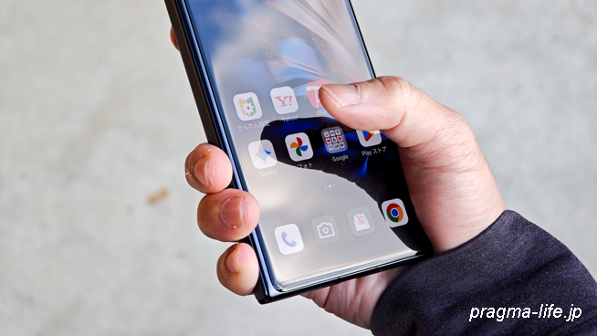 総合的には持ちやすい部類のスマートフォンで、筆者のように手が小さめであっても使いにくさは特に感じませんでした。
