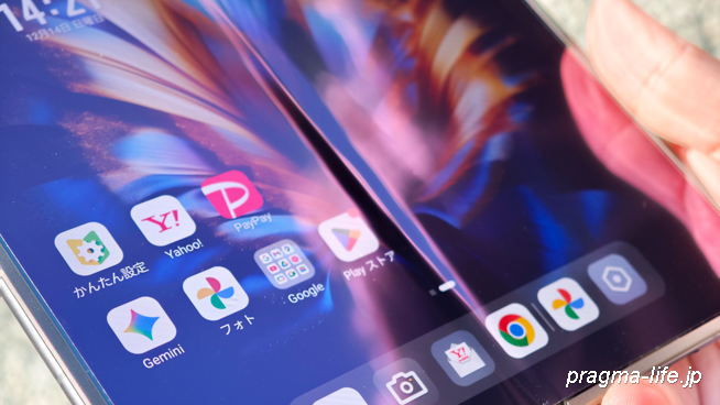 メイン画面の折り目は、見る角度と光の角度によってはかなり目立ちますが、正面から見る分にはあまり気になりませんでした。