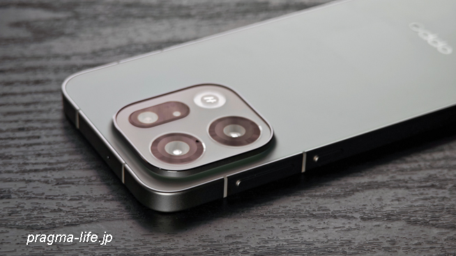 Find X8では大型の円形カメラモジュールが印象的でしたが、本機は左上にスクエア型のカメラモジュールを配置したオーソドックスなデザイン。