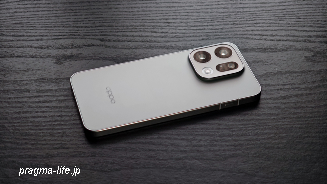 筆者が購入したOPPO Find X8のカラーはチタニウムグレーで、上品な質感のデザイン。他にシックな雰囲気のスペースブラックがあります。
