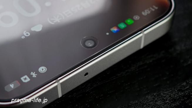 画面は約6.6インチのProXDR(AMOLED)ディスプレイ。昨今のAndroidスマホは6.7インチ程度が多いのですが、それよりもやや小さめとなっています。