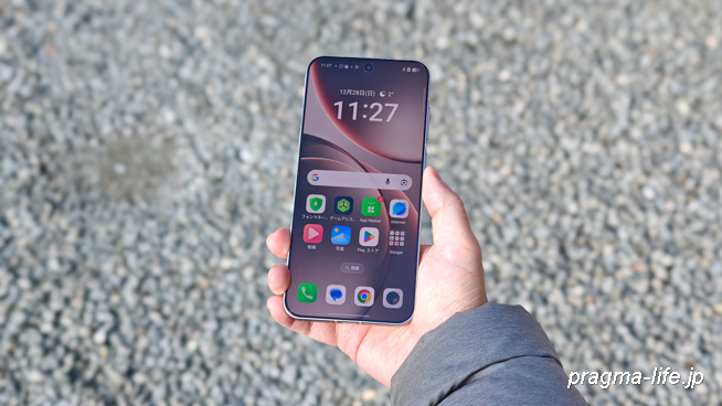 横幅は約74mmでコンパクト......というほどでもない気はしますが、それでも75mmを超えるスマホが多い中、やや持ちやすいサイズ感だと思います。