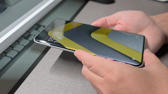 曲がった画面は耐久性が不安になりますが、大理石の表面への1.7mからの正面落下にも耐えうるという高耐久ガラスが採用されています。