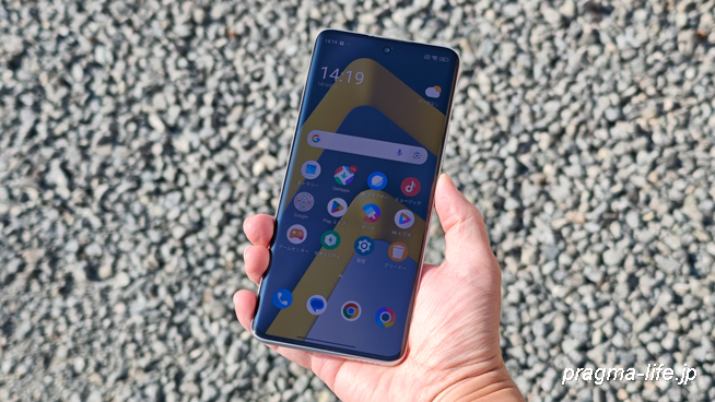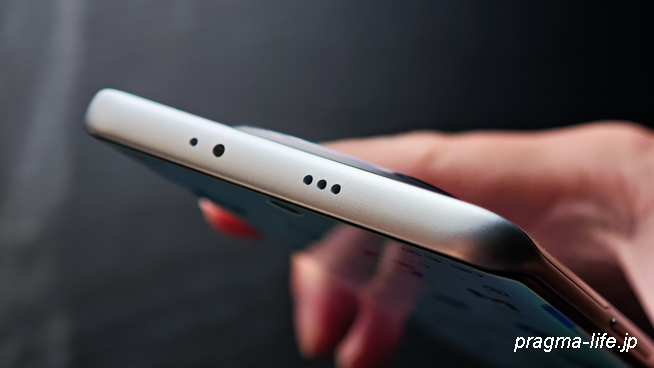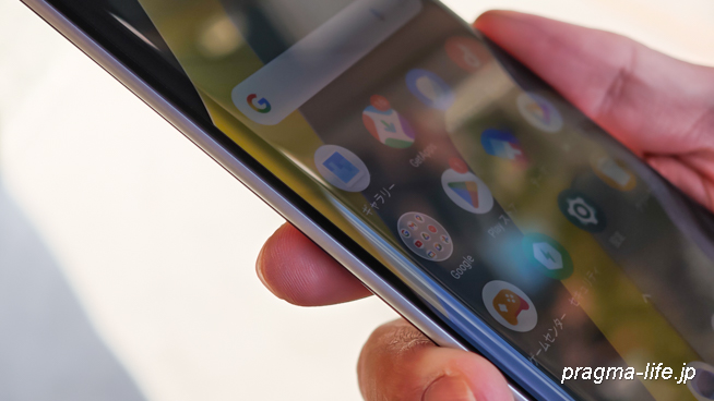 左右がカーブしたエッジディスプレイは好みの分かれる部分ではありますが、これにより横幅を抑えつつ、6.77インチと大きな画面サイズを確保しています。