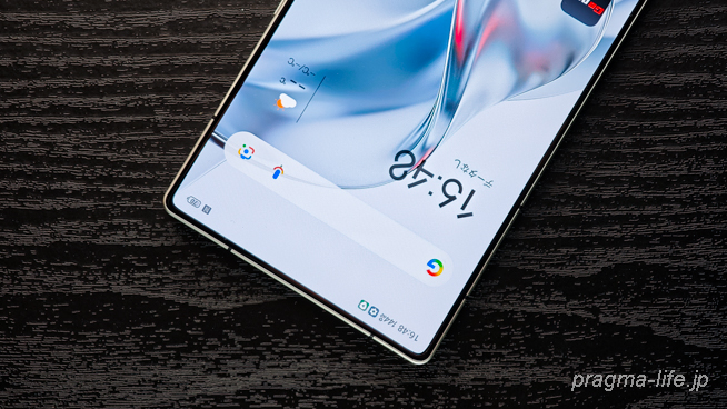 これは、ベゼルが極限まで細いだけでなく、最新のUDC(画面下カメラ)技術でインカメラが完全に隠れているから。