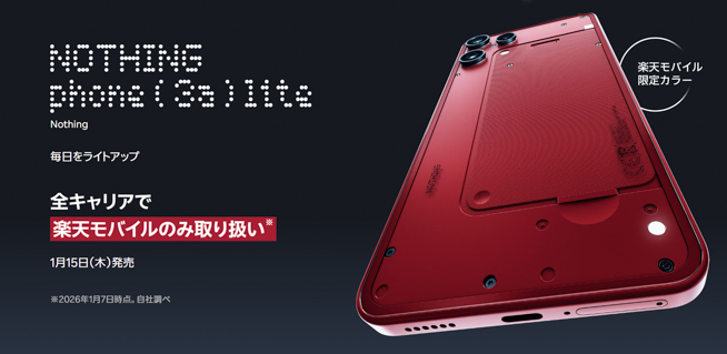 2026年1月7日、Nothingは新型スマートフォン「Nothing Phone (3a) Lite」を日本向けに発表しました。
