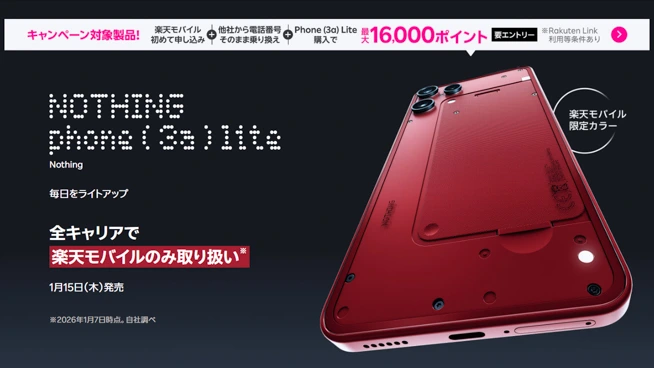 2026年1月7日、Nothingは新型スマートフォン「Nothing Phone (3a) Lite」を日本向けに発表しました。