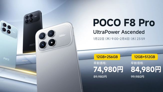 2026年1月22日、シャオミ・ジャパンは、サブブランドのPOCOから新型スマートフォン「POCO F8 Pro」を日本発売しました。