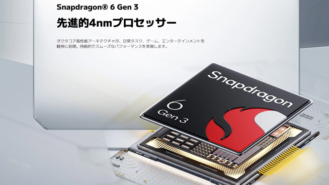 POCO M8 5Gはエントリークラスの位置付けですが、SoCにはクアルコム製「Snapdragon 6 Gen 3」を採用しており、性能的にはミドルクラスと言っても良いでしょう。