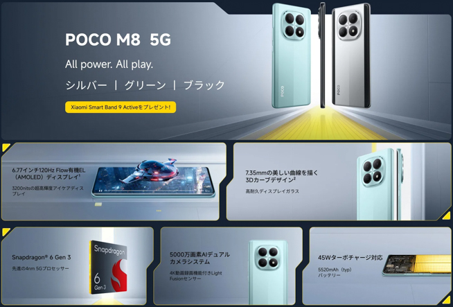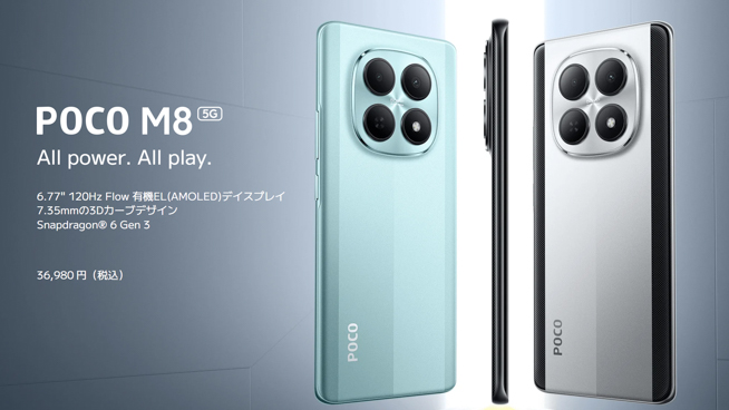 2026年1月8日、シャオミ・ジャパンは新型スマートフォン「POCO M8 5G」を正式発表しました。すでに販売が始まっています。