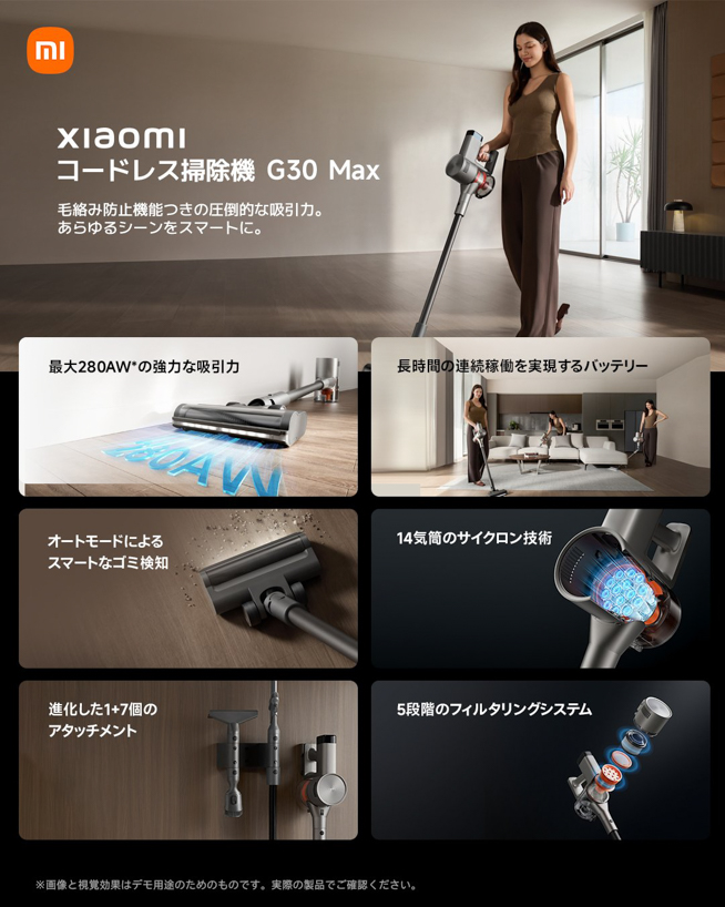 Xiaomi コードレス掃除機 G30 Maxは、圧倒的な清掃能力を謳うハイエンドモデルです。
