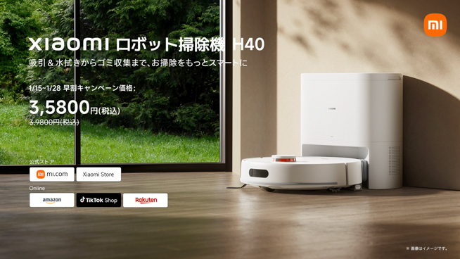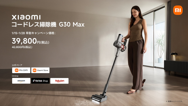 2026年1月15日、シャオミ・ジャパンは「Xiaomi コードレス掃除機 G30 Max」「Xiaomi ロボット掃除機 H40」「Mijia スマート空気清浄機 6」を発売しました。