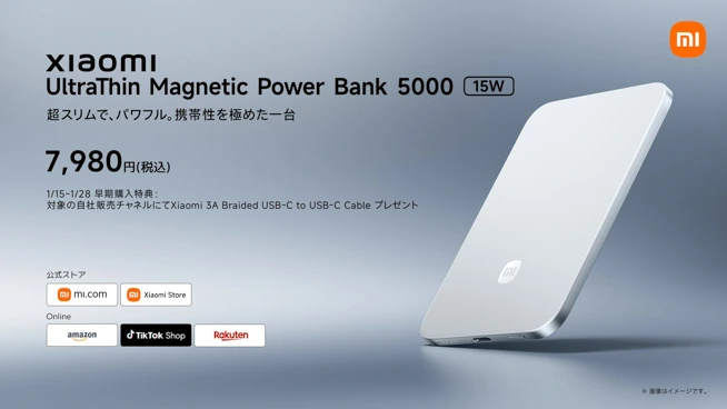 2026年1月15日、シャオミ・ジャパンは新型モバイルバッテリー「Xiaomi UltraThin Magnetic Power Bank 5000 15W」を発売しました。