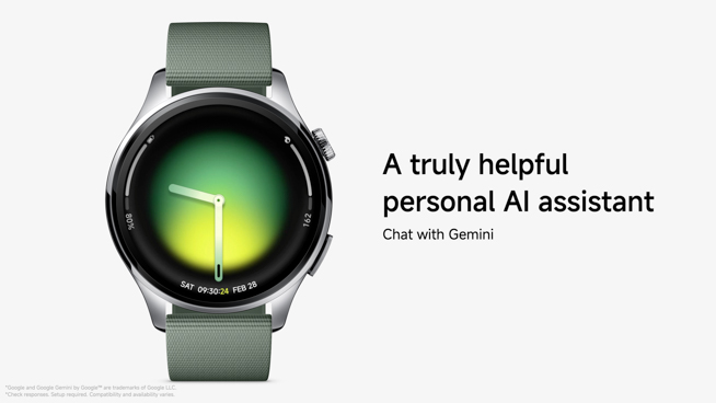 Xiaomi Watch 5は、最新のWear OS by Google(Wear OS 6)を搭載したフラッグシップモデルです。シャオミのスマートウォッチとして初めて、グーグルのAIである「Google Gemini」と直接対話できる機能を実現しています。