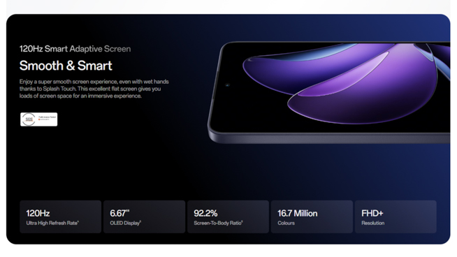 解像度はFHD+で最大リフレッシュレートは120Hz、また通常時の画面輝度は600nits、HBM輝度で1200nitsとなっています。