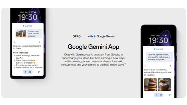 そのほか、OPPO Reno13 F 5Gはステレオスピーカーを搭載しており、Google Geminiや、友達のiPhoneとLivePhotosを簡単に共有できる機能が備わっているとのこと。