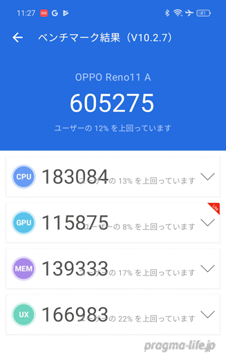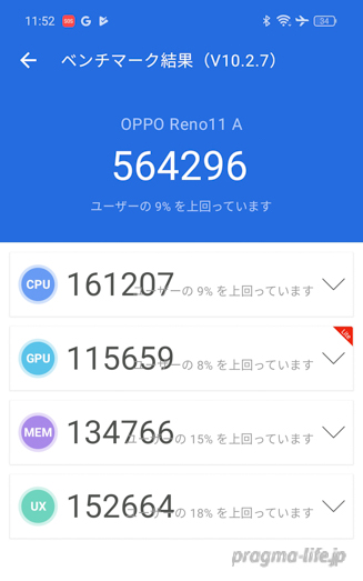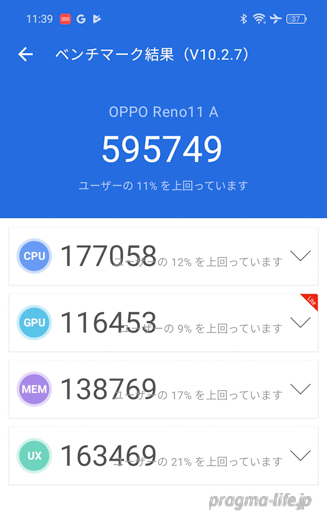 ▽OPPO Reno11 AのAnTuTuベンチマークをチェック!実は結構優秀な性能