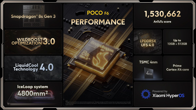 SoCは最新のハイエンドチップ「Snapdragon 8s Gen 3」で、AnTuTuベンチマーク(Ver.10)において150万点を超えるスコアを誇るといいます。