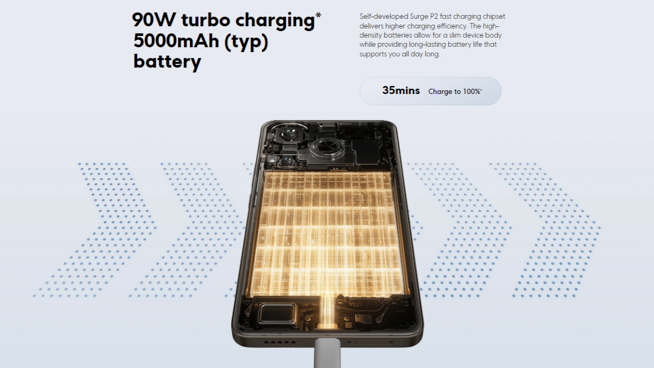 バッテリーは5000mAhで90W有線急速充電にも対応しており、35分で満充電が可能といいます。