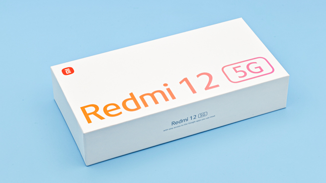 パッケージは白字でシンプル。大きな「Redmi 12 5G」のロゴが印象的です。