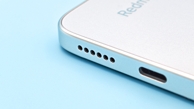 Redmi 12 5Gは格安のエントリー機らしくスピーカーはシングル仕様。底面に一つだけ備えられています。