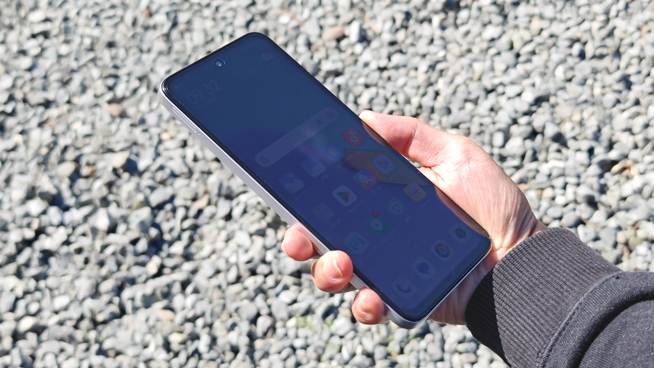 Redmi 12 5Gのディスプレイ輝度は最大で550nit。強い直射日光下では少なくとも1000nitくらいは欲しいところですが......。案の定、西日が差すような状況だと太陽光に負けて見辛くなります。