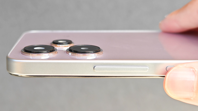 カメラ周りもスッキリとしており好印象。カメラ(奥の二つ)とライト(手前の一つ)の出っ張りは控えめです。