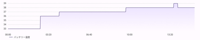 バッテリー温度:最高でも39℃に収まっている