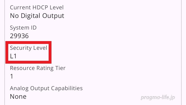 これは著作権セキュリティレベルのことで、「L1」は最高の数値。AmazonプライムビデオやNetflixの高画質再生には必須のものです。