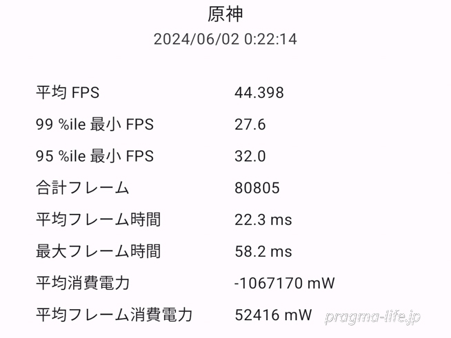 平均44.398FPSであることを考えれば、初めから最高45FPSに設定しても良いかもしれません。Redmi Note 13 Pro+ 5Gは、高い水準を求めなけば十分に「原神」を楽しむことができるでしょう。