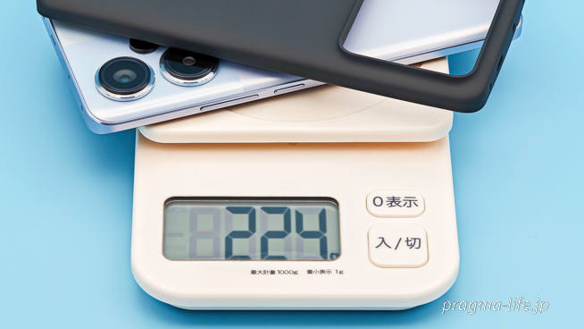 また、付属のケースも含めると実測224gでした。
